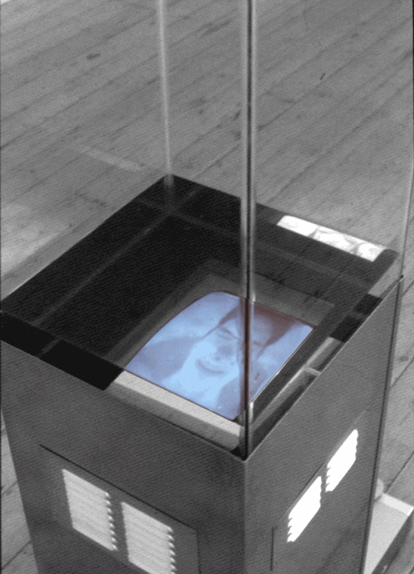 Sculpture in steel and glass with water emits sound, shown in London and at film screenings in the South East. Subject filmed under water. Work here explores the position of the individual within a context as in an installation. The behaviour of the viewer is modified by the space and atmosphere before they begin to engage with the individual artwork, video sculptures and projection. The viewers involvement with the work that follows is then controlled to some extent and involvement directed in particular ways. |