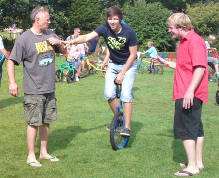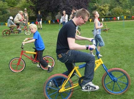 Crazy Bikes Doc's Tricky Tricycles consist for around 20 classic Raleigh BMX's. These have all been modified to make them do wierd and wacky things, from pedalling backwards to bikes you need to row and all the ones in-between All the bikes will come in a brightly coloured self contained arena. This has it own entrance and comes with all the staff necessary for your event. All you need to do is supply us with enough space (20m x 20m) This option can also be added with the Circus Workshop for even more fun. If you would like any more information or for prices please Email or call!