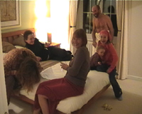 AND RELAXES ON HIS BED. GUESTS ARE INVITED TO EXPLORE AND PARTICIPATE